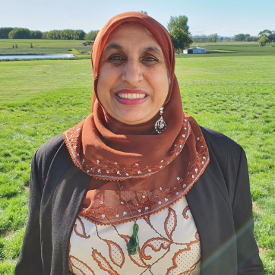 She also commits to various volunteer roles in the community. She was a founding member of the Islamic Women’s Council of New Zealand, an organisation formed in 1990 to unite Muslim women and represent their concerns. She has also been a founding member and trustee of Shama, Ethnic Women’s Trust, which supports ethnic minority women through social work service, life-skills classes and community development. She has worked in the area of sexual violence prevention both as a volunteer and as part of Government working groups. Anjum is a trustee of Trust Waikato, a major funder in the Waikato Region.